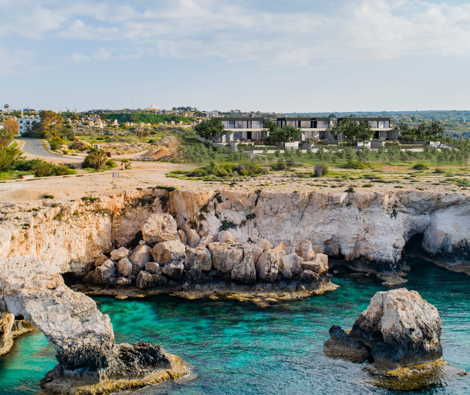 The modern design takes in the surrounding area offering feature natural stone walls, and large windows to enjoy the turquoise blue Mediterrean sea.